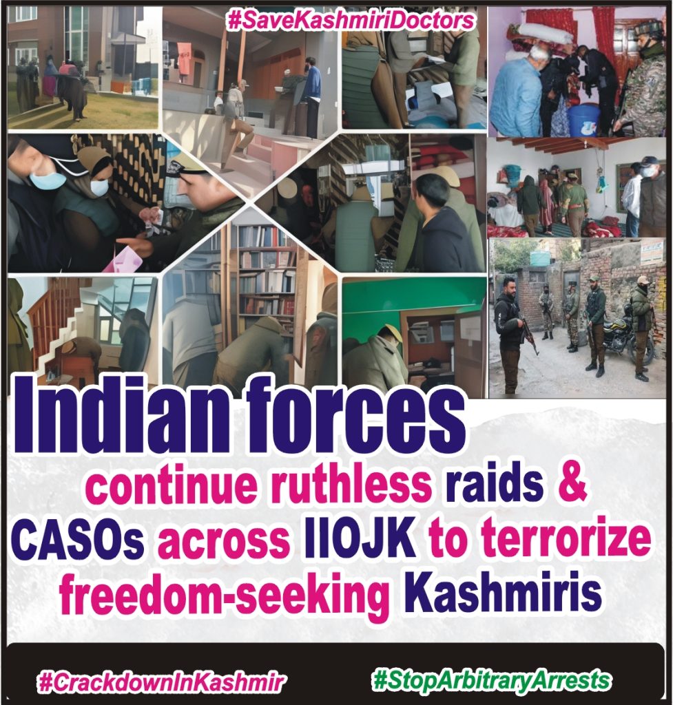 گھروں پر چھاپے مارے جاتے ہیں، جائیدادوں پر قبضہ کیا جاتا ہے اورلوگوں کوتلاشی کے بہانے ہراساں کیا جاتا ہے جبکہ ”وائٹ کالر عسکریت پسندی” کالیبل لگاکرجان بوجھ کر پیشہ ور افراد کو نشانہ بنایا جاتا ہے۔